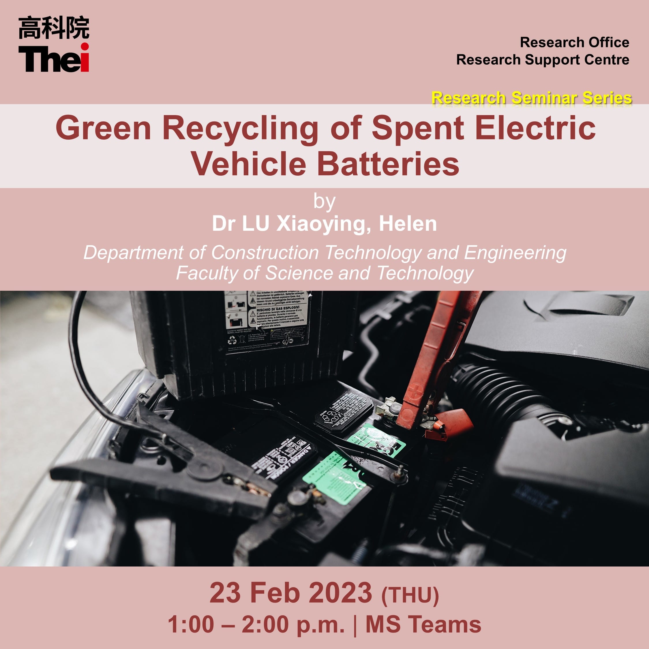 THEi Research Webinar “Green Recycling of Spent Electric Vehicle Batteries” was successfully held on 23 February 2023